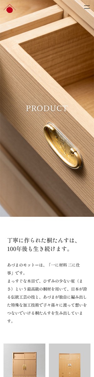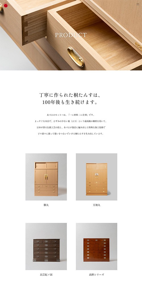 和歌山県にある桐家具の製造・販売を手がける「家具のあづま」様のコーポレートサイトリニューアル。弊社ではコーディングとCMSの実装を担当いたしました。