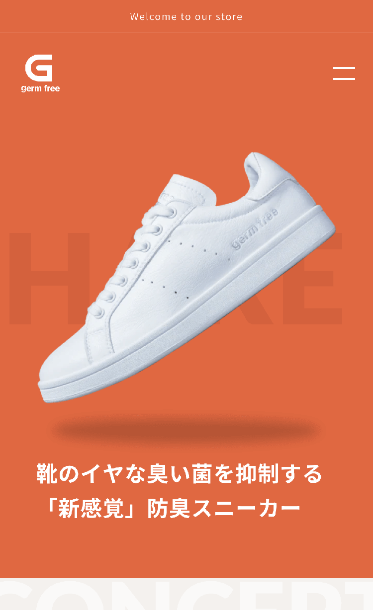 嫌な臭い菌を抑制する新感覚の無菌スニーカー germ free。