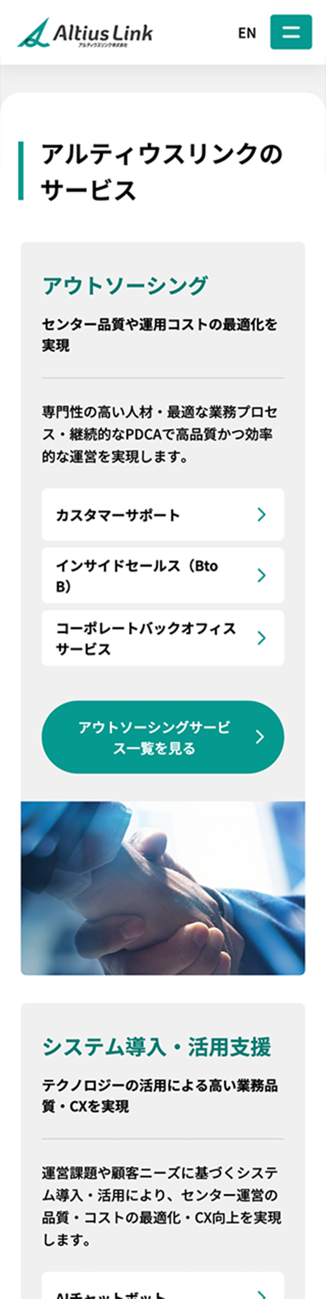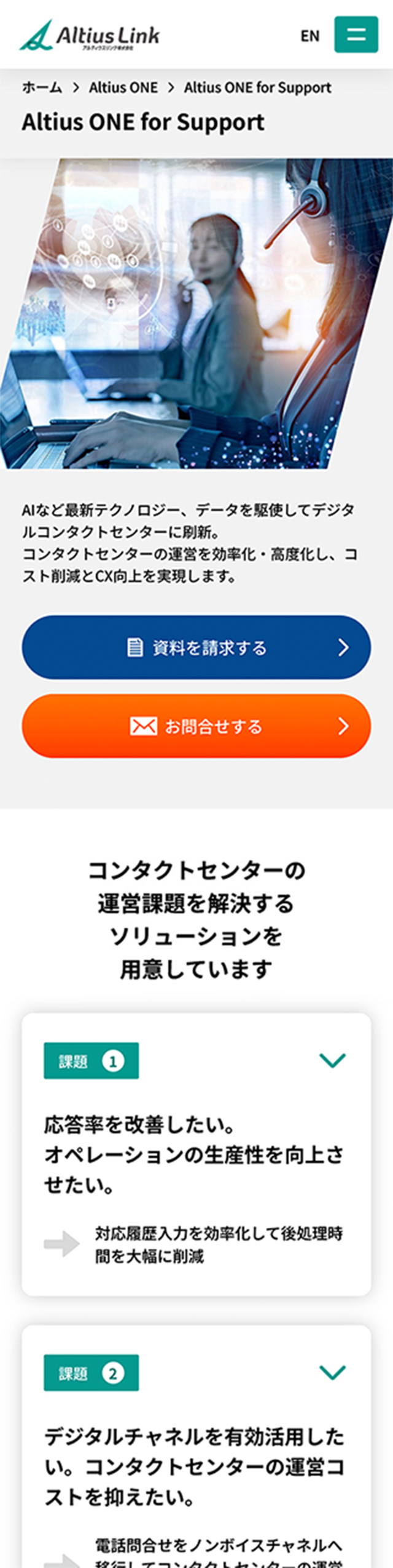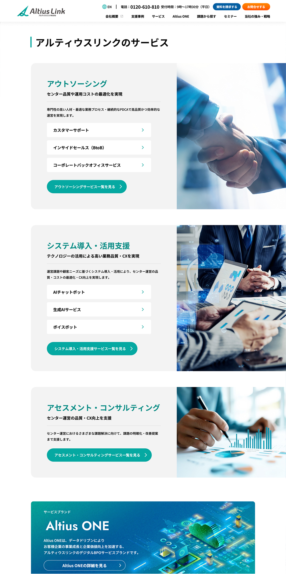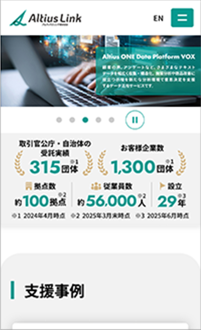 カスタマーサポートや企業のバックオフィス領域におけるデジタルBPO、ITソリューション、エンジニア派遣など、大手企業や官公庁を中心に業務支援を行うアルティウスリンク株式会社のサービスサイトのデザインを担当いたしました。