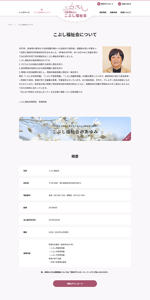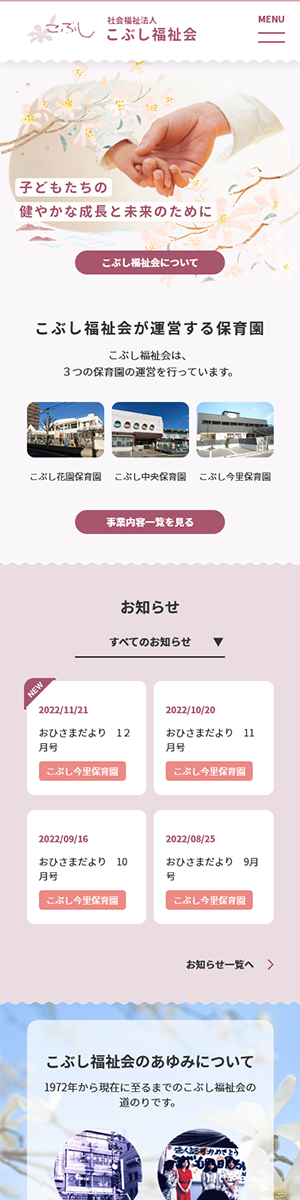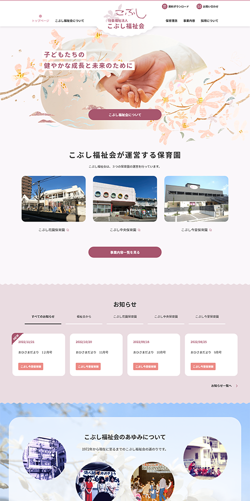 こぶし福祉会本部、こぶし花園保育園、こぶし中央保育園、こぶし今里保育園の4サイトのリニューアルを実施いたしました。