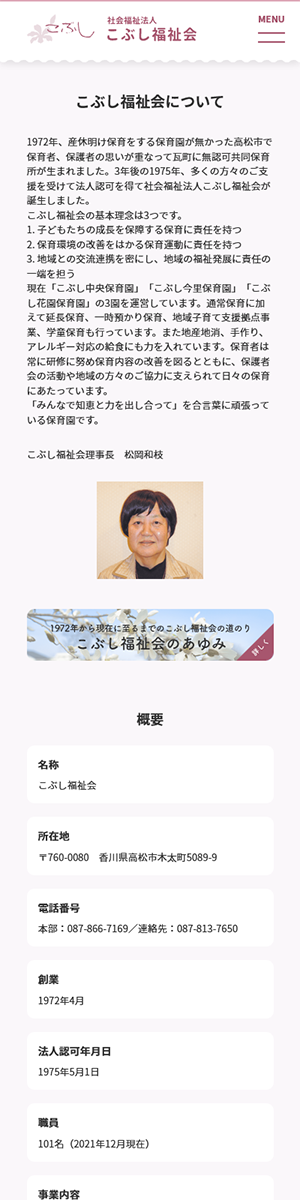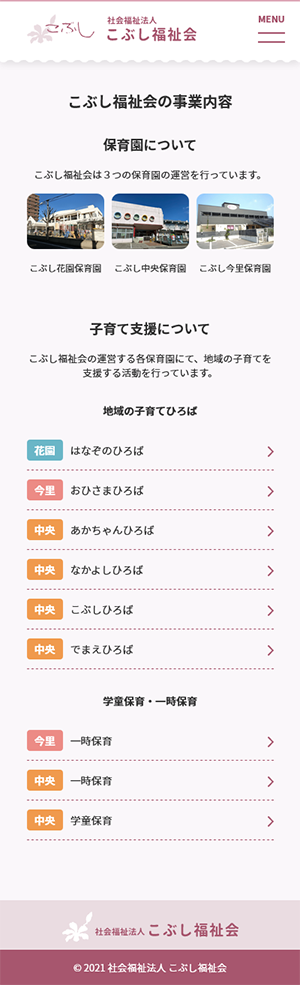 サイトの老朽化によるデザインの刷新とスマートホン対応を実施したいとのことでご依頼をいただきました。各保育園4サイトの同時公開で対応いたしました。