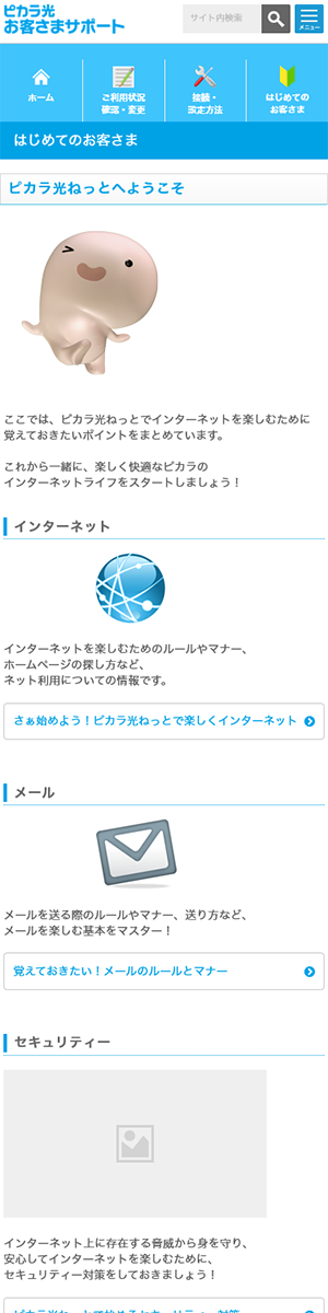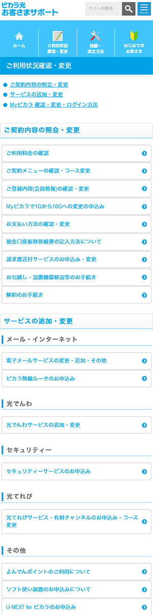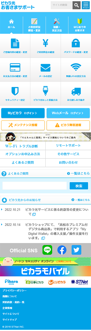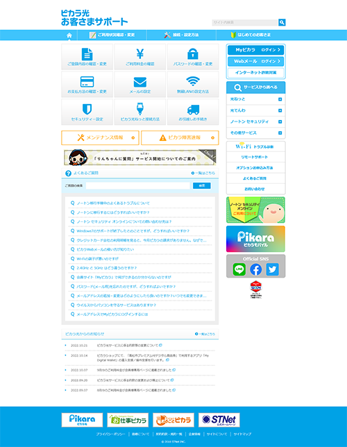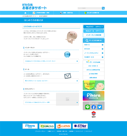 香川県高松市の株式会社STNetが運営する光通信サービス「ピカラ」のサポートサイト。大量の情報をスッキリ見せるようデザインしました。
