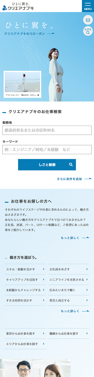 最初のコーポレートサイトリニューアルの後、派遣コンテンツ、転職コンテンツと情報が増えていくことが最初から想定されていたこと、また「しごと検索」「せとうちWork&Life」「ちょこテク」「クリエ×ママスクエア」といった運用サイトも抱えることから、導線のUIに非常に気を配りました。