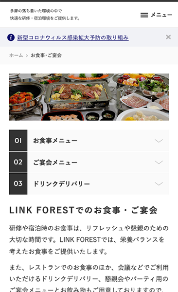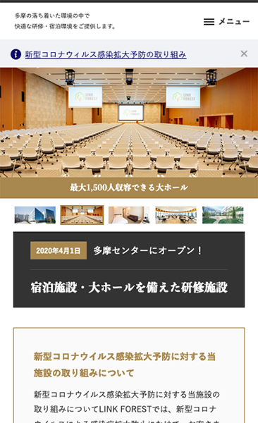KDDIラーニングが運営する複合型研修宿泊施設「LINK FOREST(リンクフォレスト)」の施設サイト。2020年4月オープンに合わせての公開だったため、施設完成前から構築をスタートし、写真撮影や原稿作成など同時並行で進行しました。