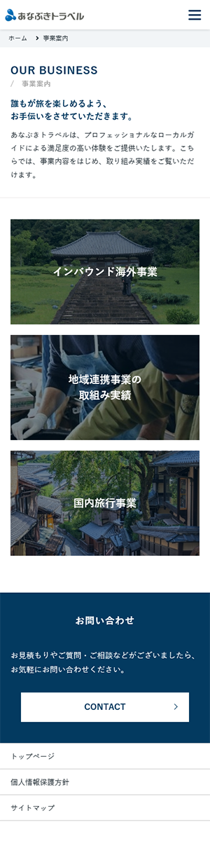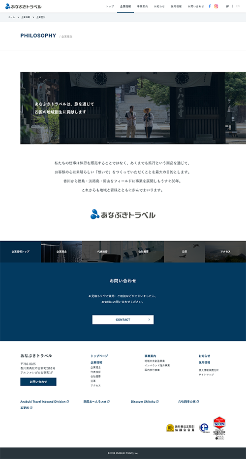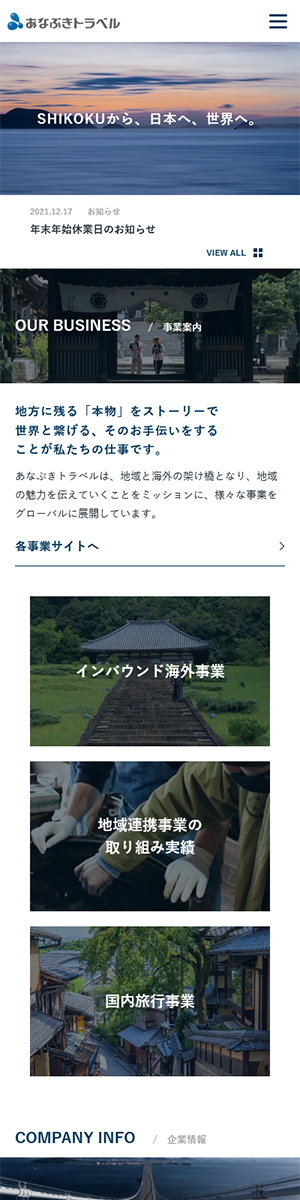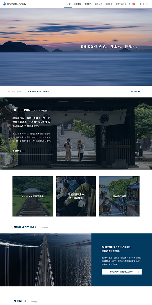 主力事業である国内旅行(バスツアー、おへんろ)のイメージが強い中、インバウンドや地域連携事業などの地域創生への取り組みについても認知いただけるよう、コンテンツ設計を行いました。