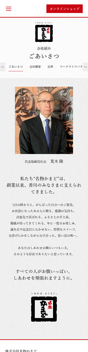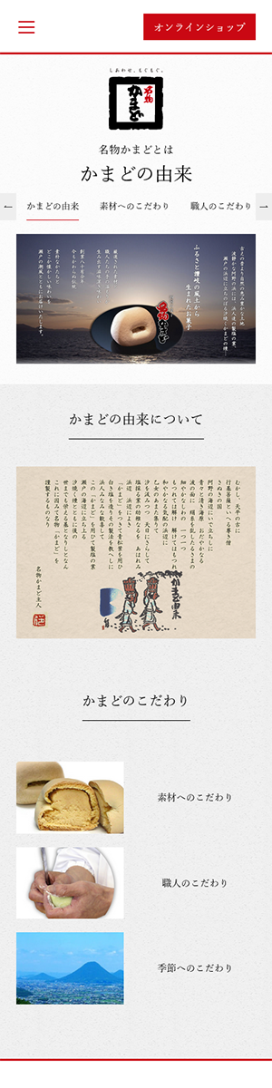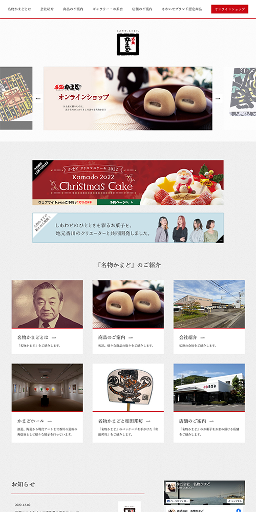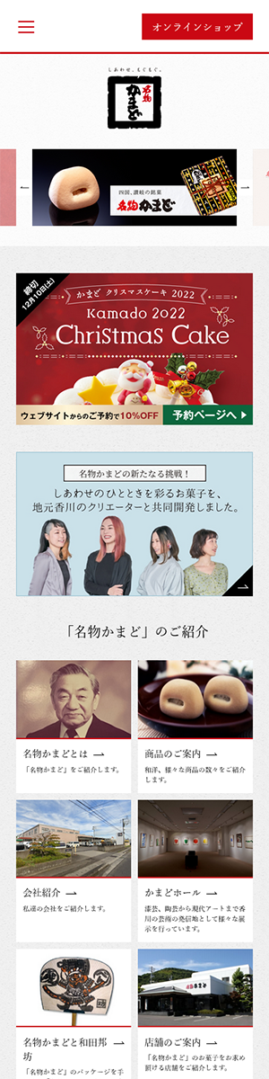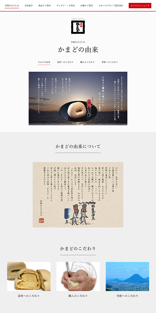 香川県の老舗和洋菓子店「名物かまど」コーポレートサイトのリニューアル。