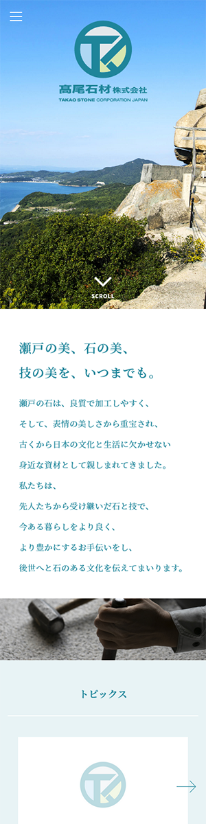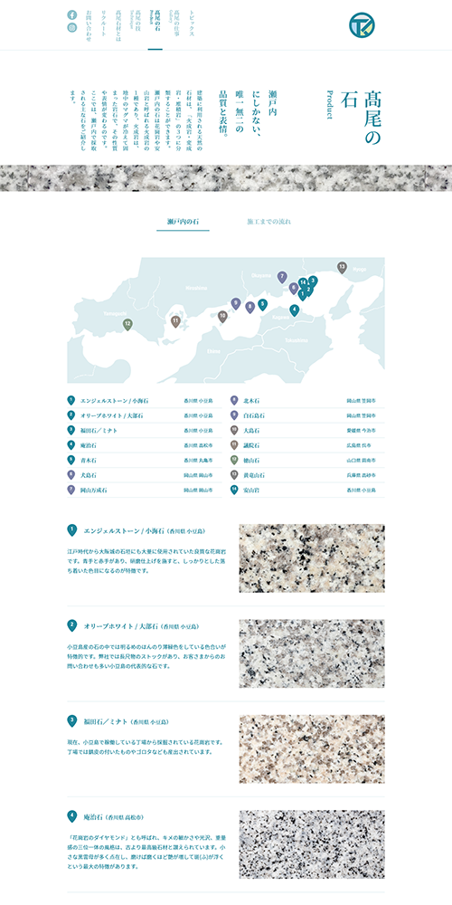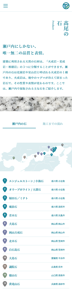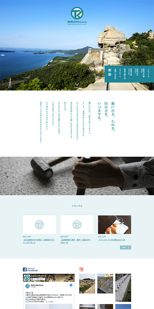 小豆島にある石材会社「髙尾石材株式会社」のコーポレートサイトリニューアルのコーディングとCMS実装を担当。お知らせや施工実績を自社で更新できるようにした他、リクルートコンテンツにも力を入れています。