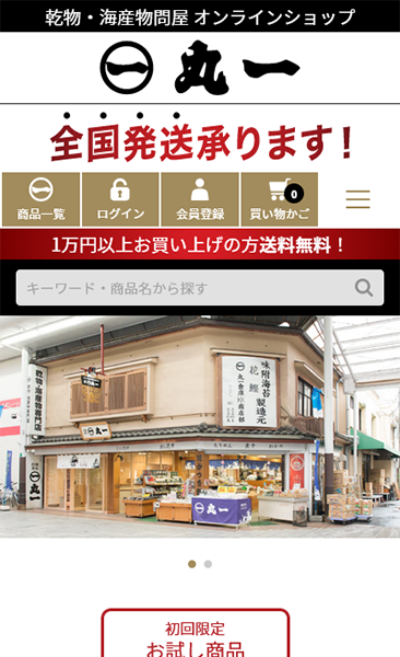 香川県の老舗乾物店「丸一倉庫株式会社」のブランド「花の将」。花の将ECサイトが丸一倉庫ECサイトとの統合に伴いリニューアル。サイト全体の雰囲気は丸一倉庫ECサイトの色合いを継承し、アクセントカラーに花の将のテーマカラーが使用されました。香川県ではだしの材料ででおなじみの「いりこ」の他、本枯節などのかつお節や小豆島のそうめん「島の光」など様々な乾物が取り扱われています。