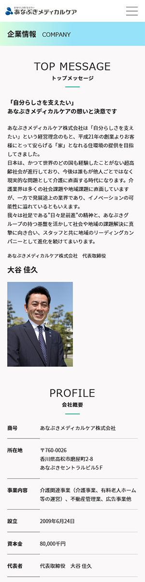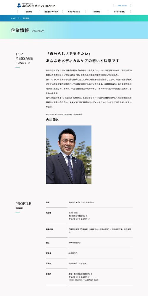 あなぶきメディカルケア株式会社のコーポレートサイトリニューアルを担当。