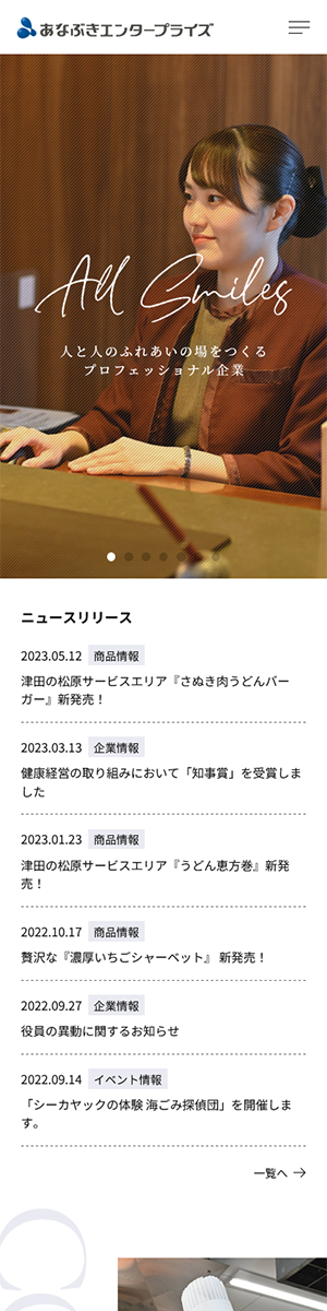 スタッフがいきいきと働く姿をメインビジュアルに使用することでスローガンである「All Smiles」に説得力を持たせました。