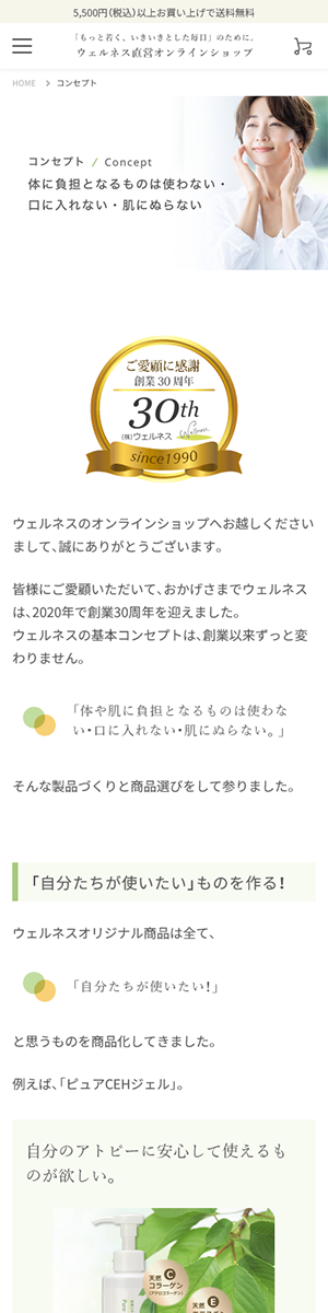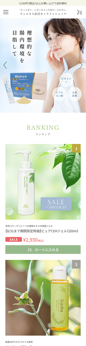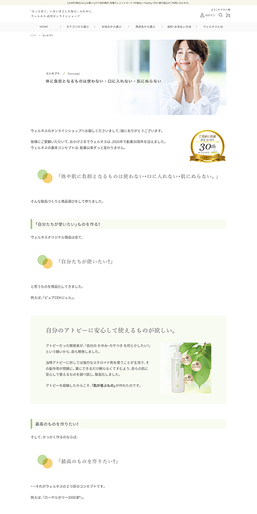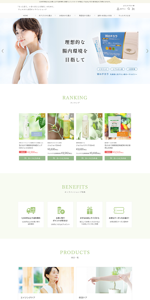 株式会社ウェルネス様が運営するオンラインショップをリニューアル。既存コンテンツの見直しだけでなく、ECストアの再検討、デザインルール策定、運用フローのテンプレート化など、総合的にサポートさせていただきました。