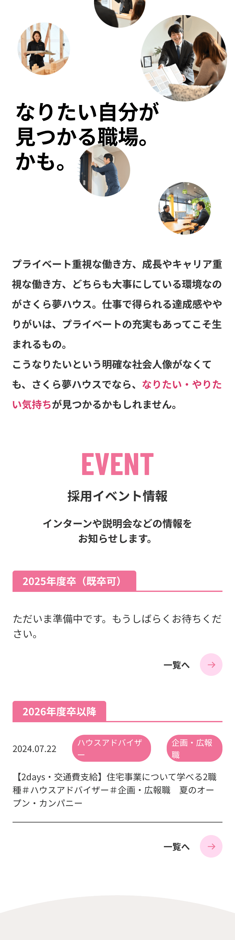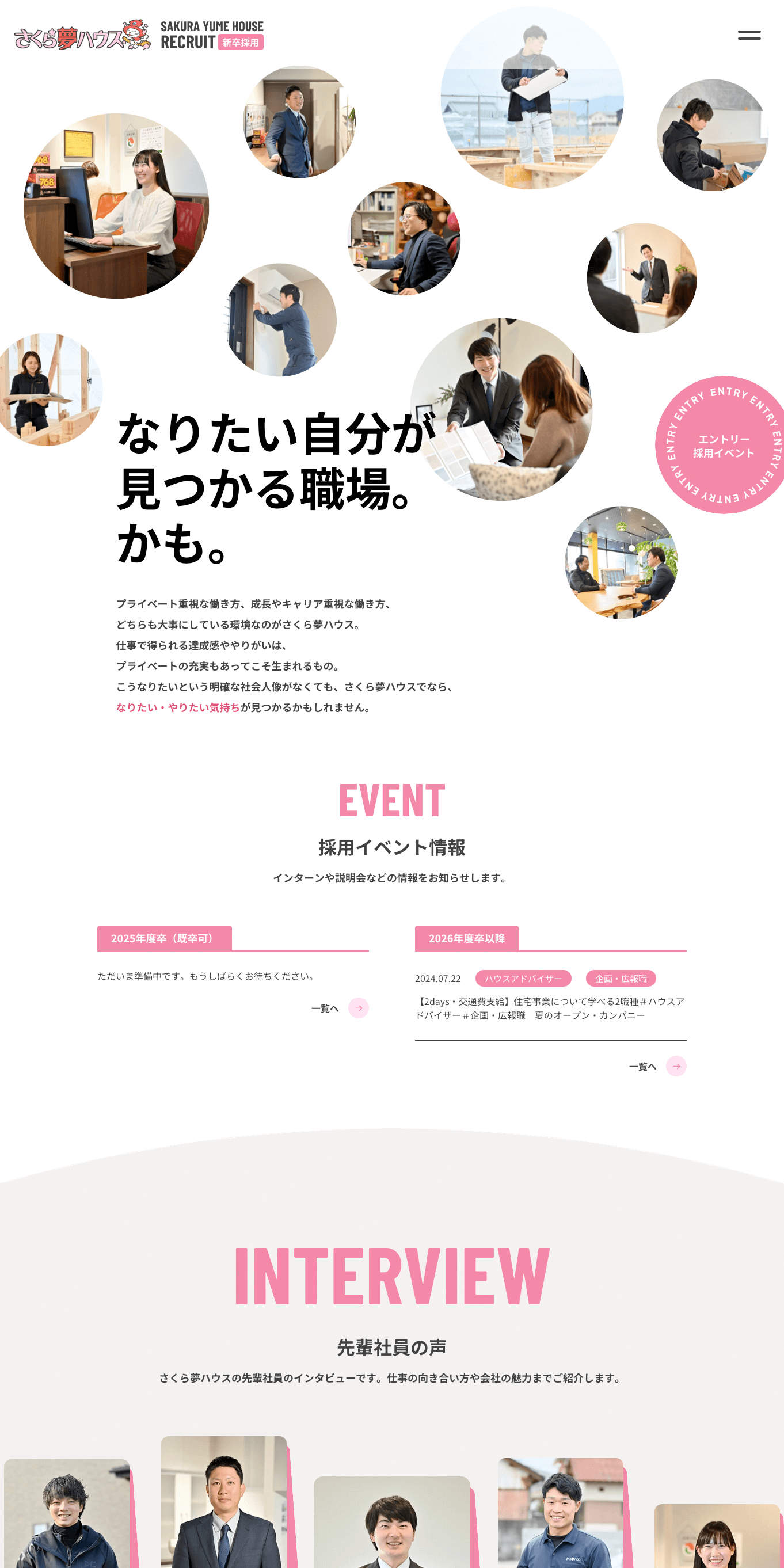 さくら夢ハウス様の採用サイトをリニューアル。中途採用サイト、新卒採用サイトそれぞれで、取材・撮影からデザイン~制作まで担当しました。