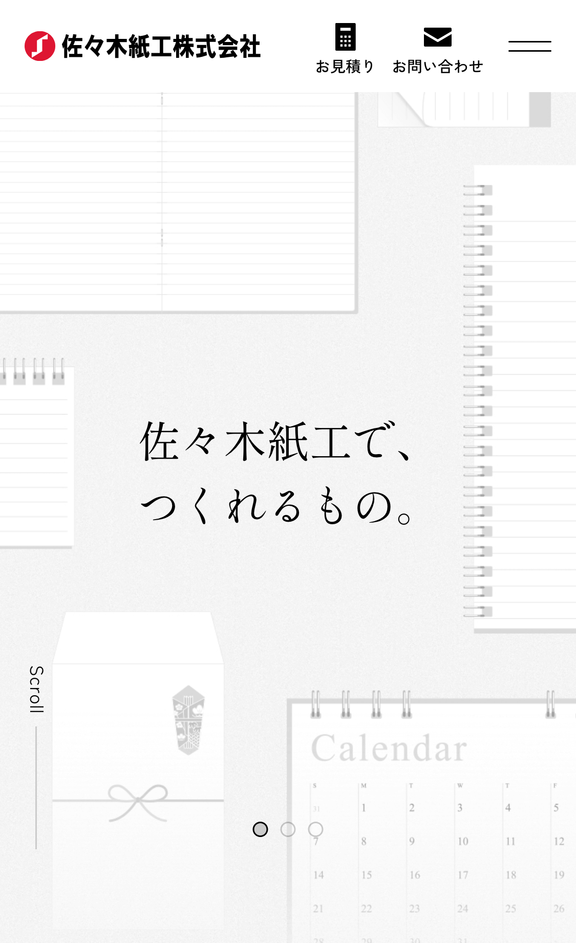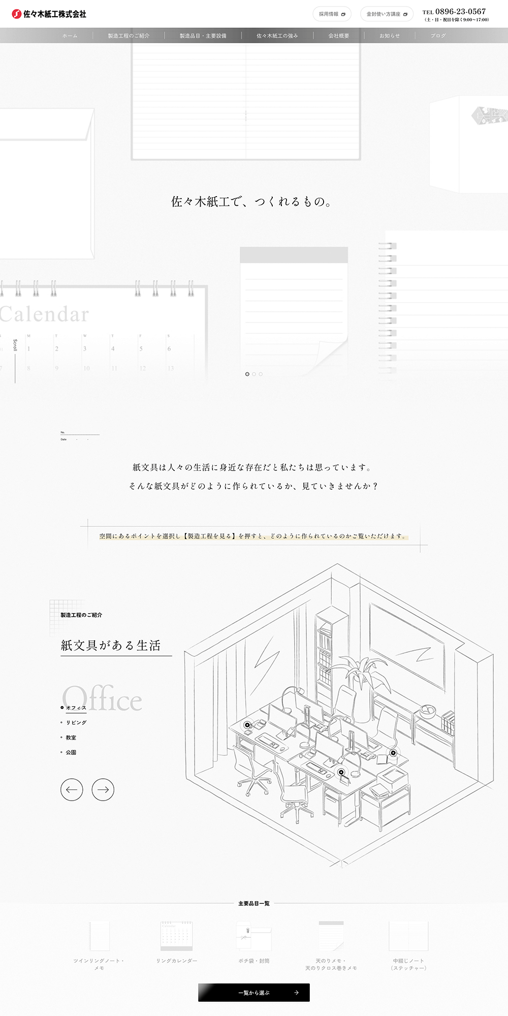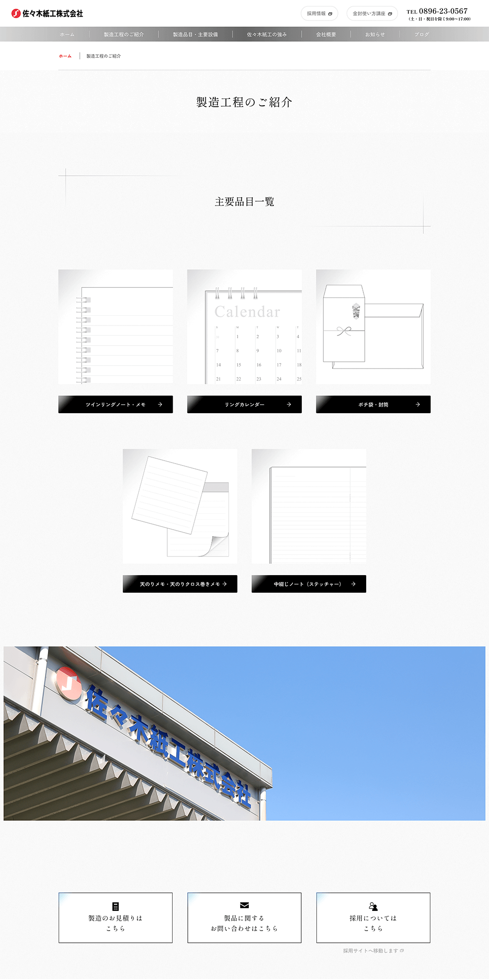 愛媛県四国中央市にあるノートやポチ袋・封筒、リングカレンダーなど、多岐にわたる紙製品を製造する佐々木紙工様のコーポレートサイトのリニューアルを担当させていただきました。