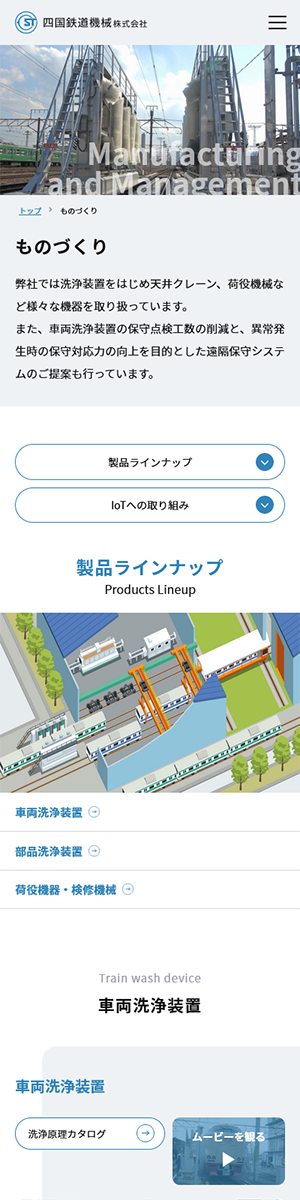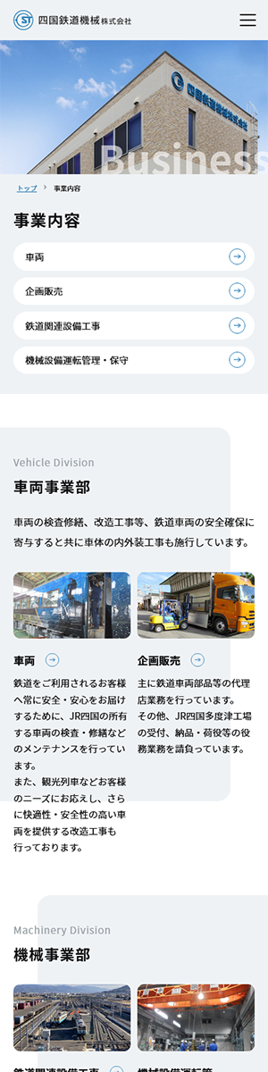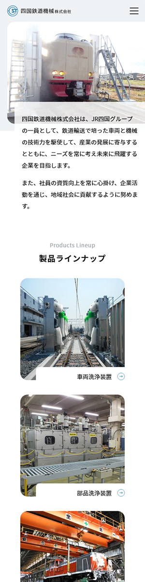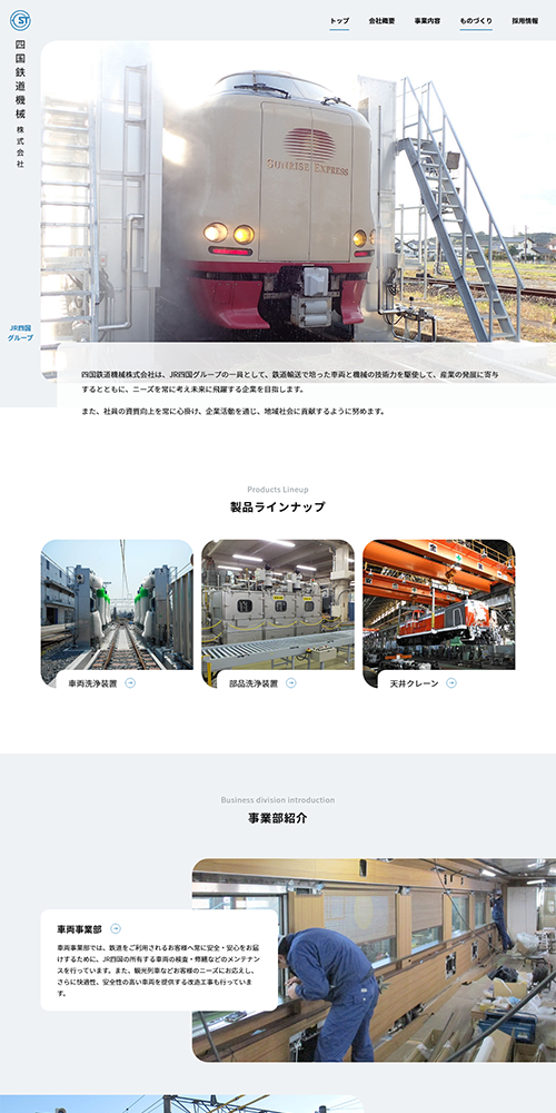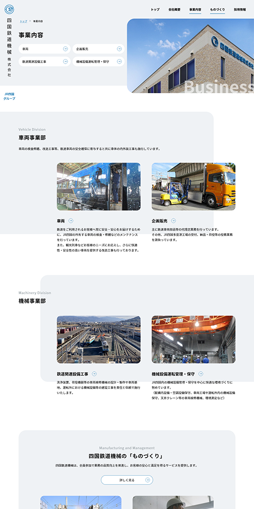 BtoBの企業だからこそ堅苦しくなりすぎない若干の柔らかさを取り入れたいと考え、機械・工業から連想される「アール」(角に持たせる丸み)をテーマにデザインしました。写真が目に入りやすい様、色味はブルー基調で抑えめにしています。