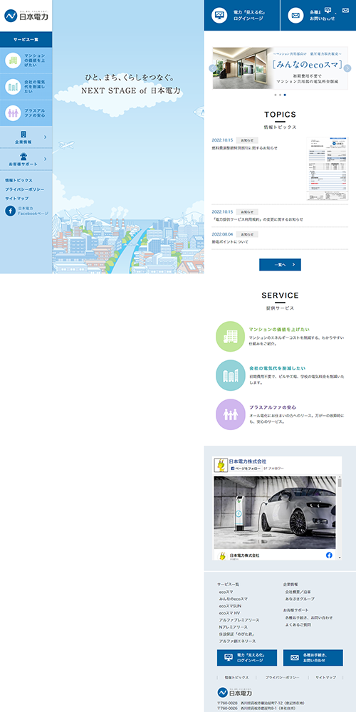 二社が合併するため新しいサイトが必要になったのと、旧サイトはデザインが古くスマートフォンに対応していなかったのでリニューアルのご依頼をいただきました。電力関連の各種手続きをサイトで受け付けるため、複数個のフォームが稼働しています。